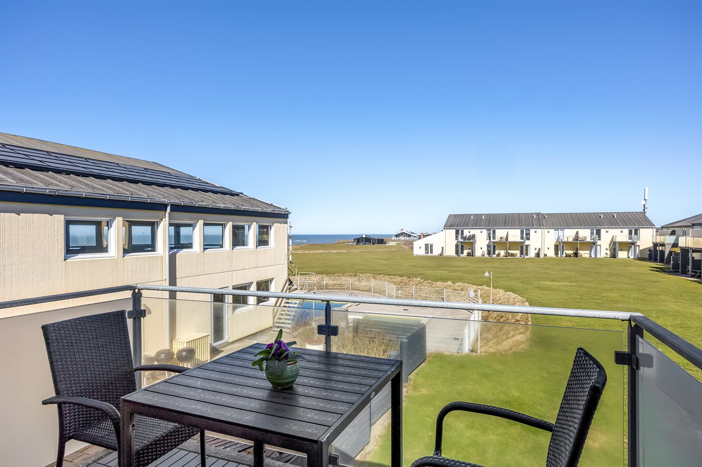 Velkommen til en skøn ferielejlighed i Løkken, beliggende på Lyngbyvej 239 A, med en udsigt, der tager pusten fra enhver. Denne rummelige lejlighed, ideel for op til 4 personer, tilbyder en perfekt base for familier og venner, der ønsker at nyde Nordvestjyllands naturskønne skønhed. Her kan I tilbringe varme sommerdage ved den fælles udendørs swimmingpool eller lade børnene boltre sig i den sikre børnepool. Ejendommen har desuden en veludstyret legeplads, som sikrer timevis af sjov for de små. I fælleshuset finder I gratis adgang til vaskemaskiner og tørretumbler, hvilket gør jeres ophold endnu mere bekvemt. Den solrige altan er det ideelle sted at nyde morgenkaffen eller en god bog, mens I lader jer fordybe i den friske havluft. Løkken byder på en skøn strand, hyggelige caféer og lokale butikker, så I kan få det bedste ud af jeres ferie. Uanset om I ønsker at slappe af eller udforske de smukke omgivelser, er denne lejlighed et fremragende valg for jeres næste ferie i Danmark.