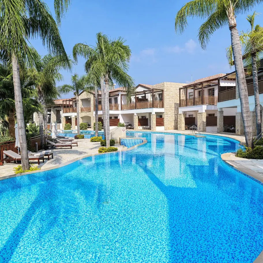 Ayia Napa, Cypern - Olympic Lagoon Resort er det perfekte sted for en luksuriøs ferie for hele familien. Hotellet ligger i smukke omgivelser og byder på 5 swimmingpools, herunder vandrutsjebaner til de mindste. Hvis du foretrækker at slappe af på stranden, ligger den blot 150 meter væk.På hotellet finder du et væld af faciliteter og aktiviteter, der passer til både store og små. Du kan deltage i vandaerobic, vandsport, fodbold eller Zumba, mens børnene kan hygge sig i børneklubben. Med en skøn beliggenhed tæt på stranden og et væld af faciliteter, vil du ikke mangle noget under dit ophold på Olympic Lagoon Resort.